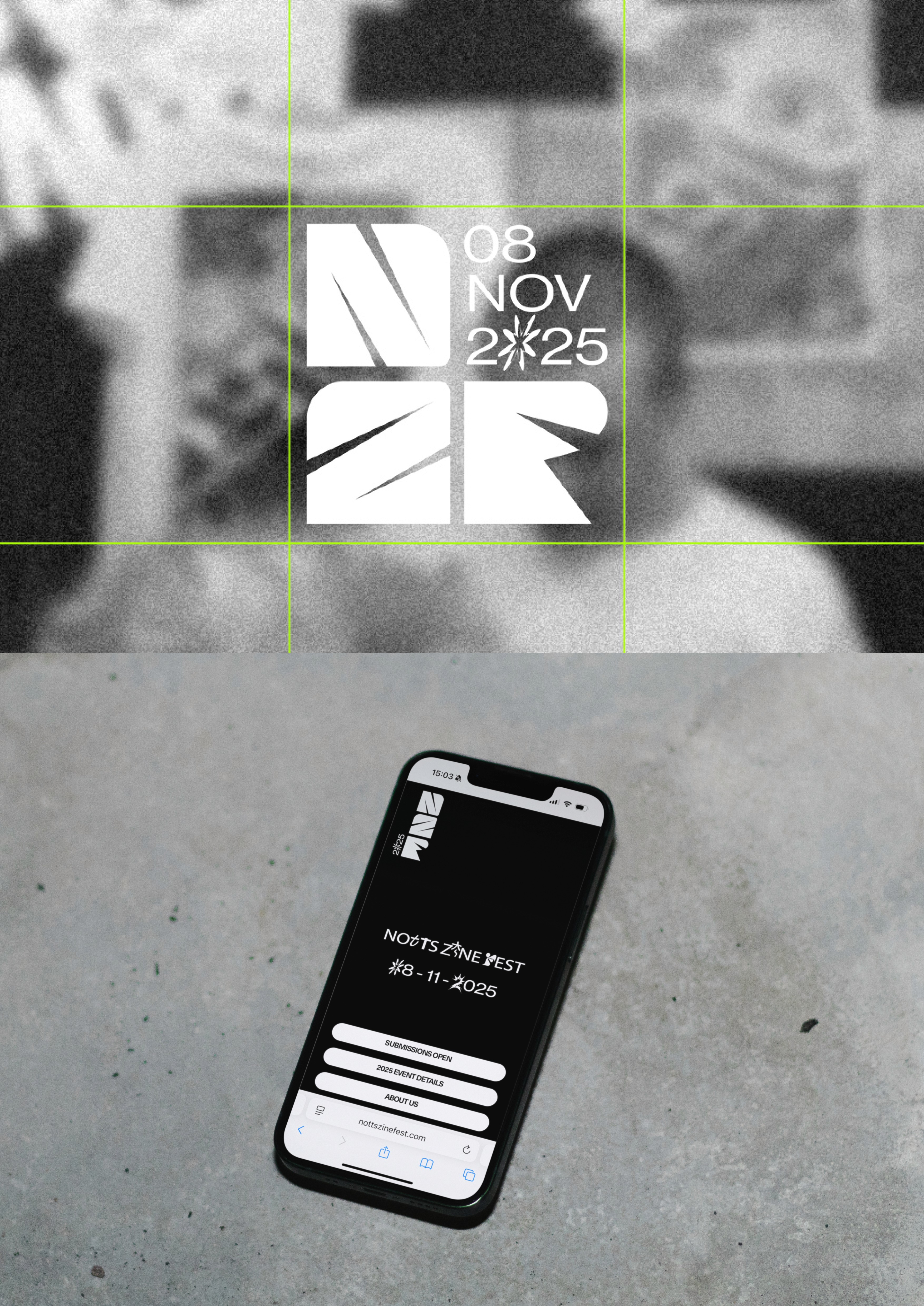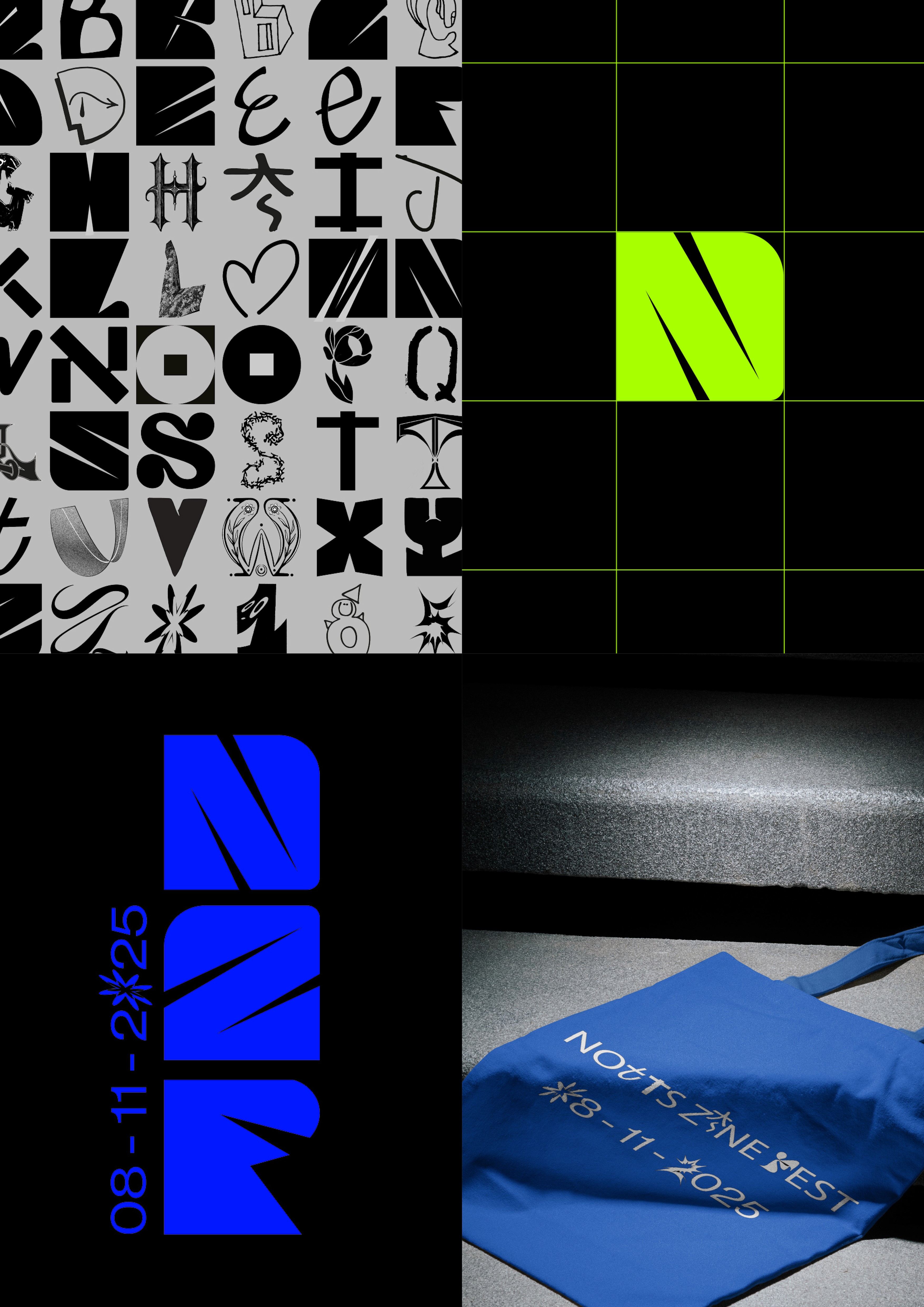 Ation Studio developed a 360° rebrand for Notts Zine Fest (NZF) in collaboration with Dizzy Ink, creating a bold visual identity that bridges the tactile world of DIY print with contemporary digital culture. The visual language thrives on stark contrast, pairing raw physical textures and handmade aesthetics with vibrant RGB colour and a striking digital presence across web, print and event activations. At the centre of the identity is a communal typeface built from letter submissions by multiple artists, collated into a shared font that reflects the collaborative, grassroots spirit of zine culture. Designed to capture the experimental and community-led nature of the festival, the system celebrates independent publishing and positions NZF as a vibrant platform where creators, audiences and ideas come together through the radical energy of DIY print.